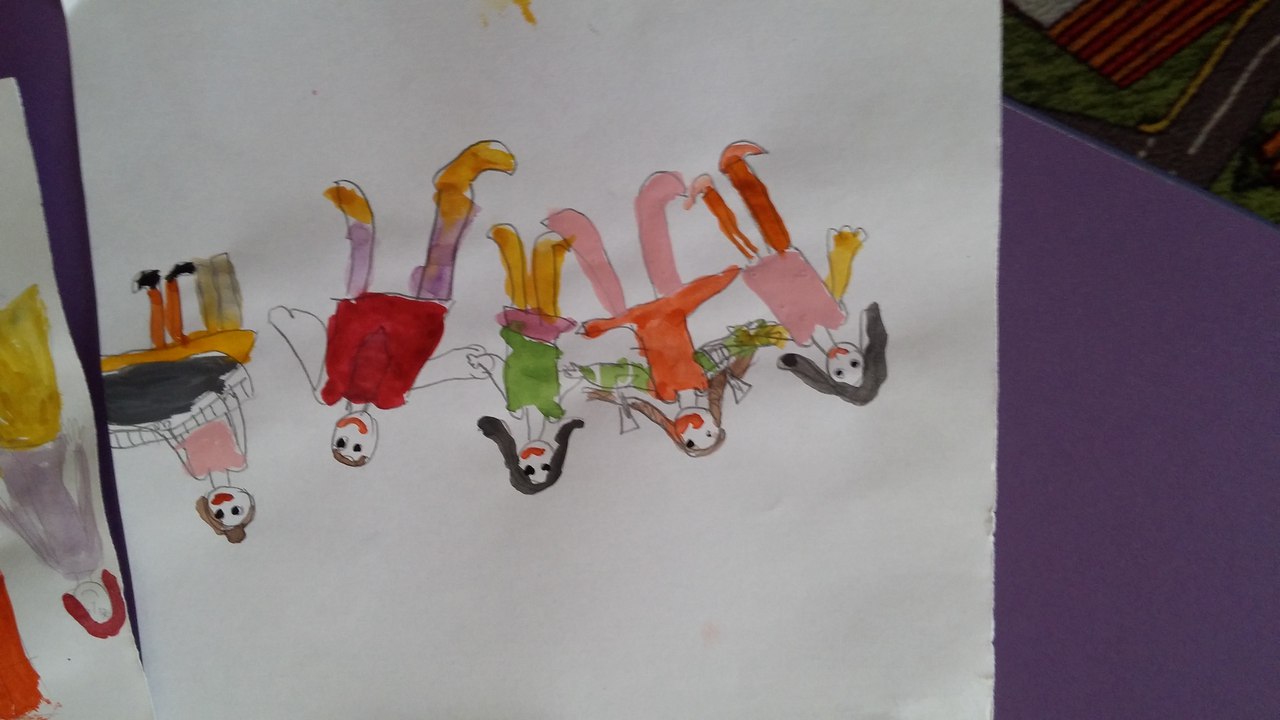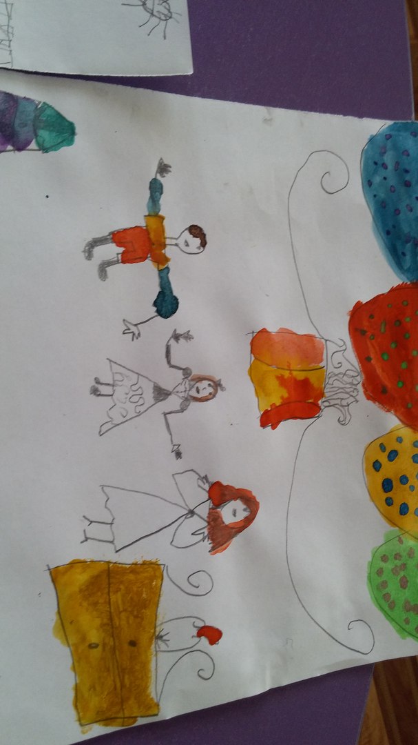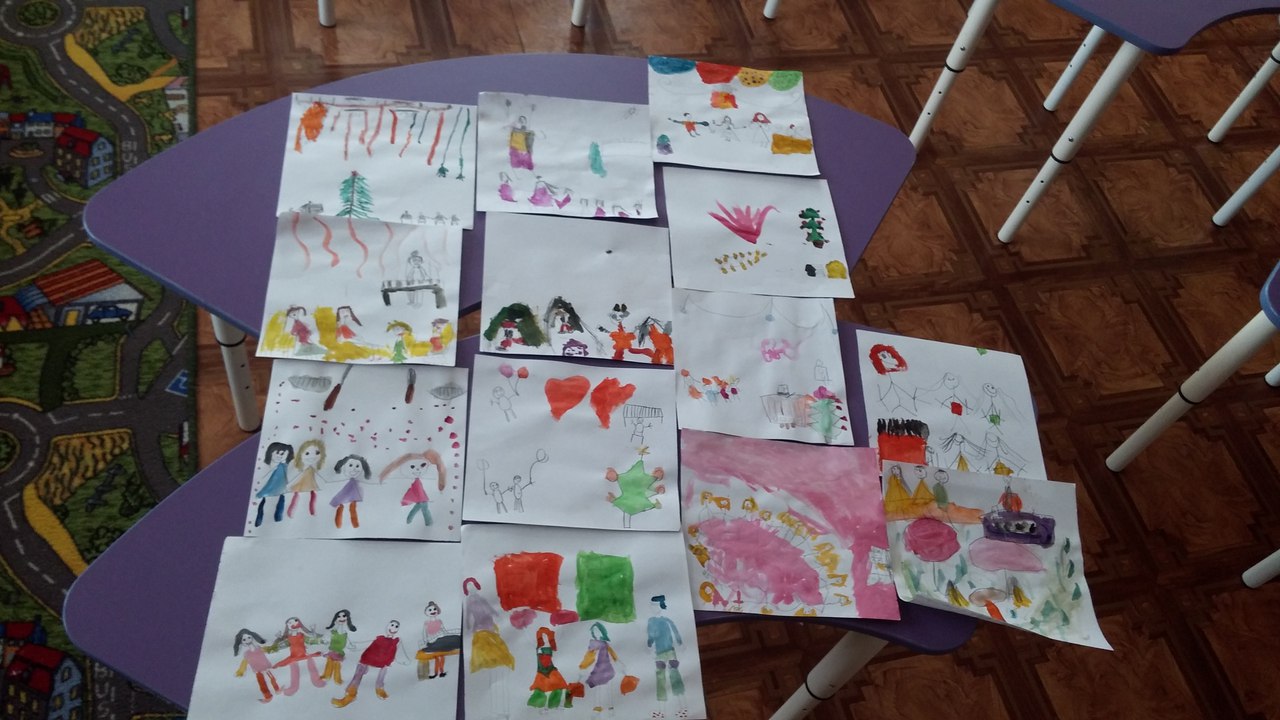 Дети с помощью акварели передавали атмосферу и деятельность на музыкальном занятии. Сначала мы говорили о том, чем мы занимаемся – поем ,танцуем, водим хороводы, слушаем музыку, играем на музыкальных инструментах. Затем дети наперебой проговаривали- «Что же именно можно изобразить и как мы можем видеть. На всех работах изображена любимая детьми муз.руководитель Елена Викторовна.